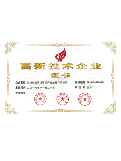 鑫承诺-“环保管家先行示范单位”甲级称号